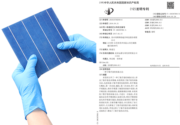 手套經(jīng)過特殊工藝處理,通過驗證將手套放置氮氣柜當(dāng)中80H,手套接觸產(chǎn)品無任何氧化情況,經(jīng)權(quán)威機構(gòu)檢測氯元素及硫元素完全符合接觸電池片標準,且不會在電池片上面留下任何指印。